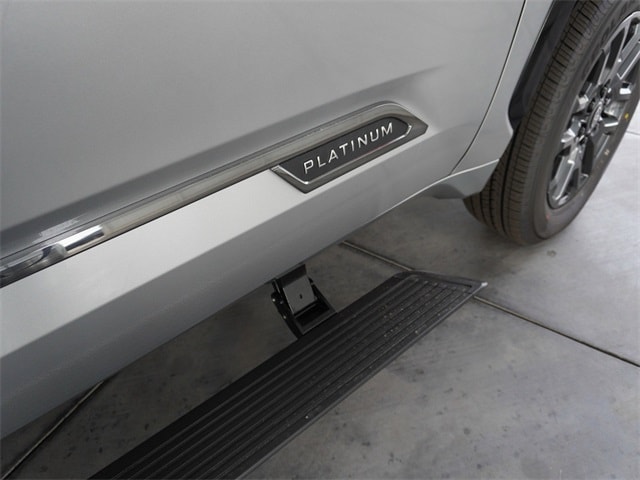 • Dark-chrome-accented side door moldings with "platinum" badge.