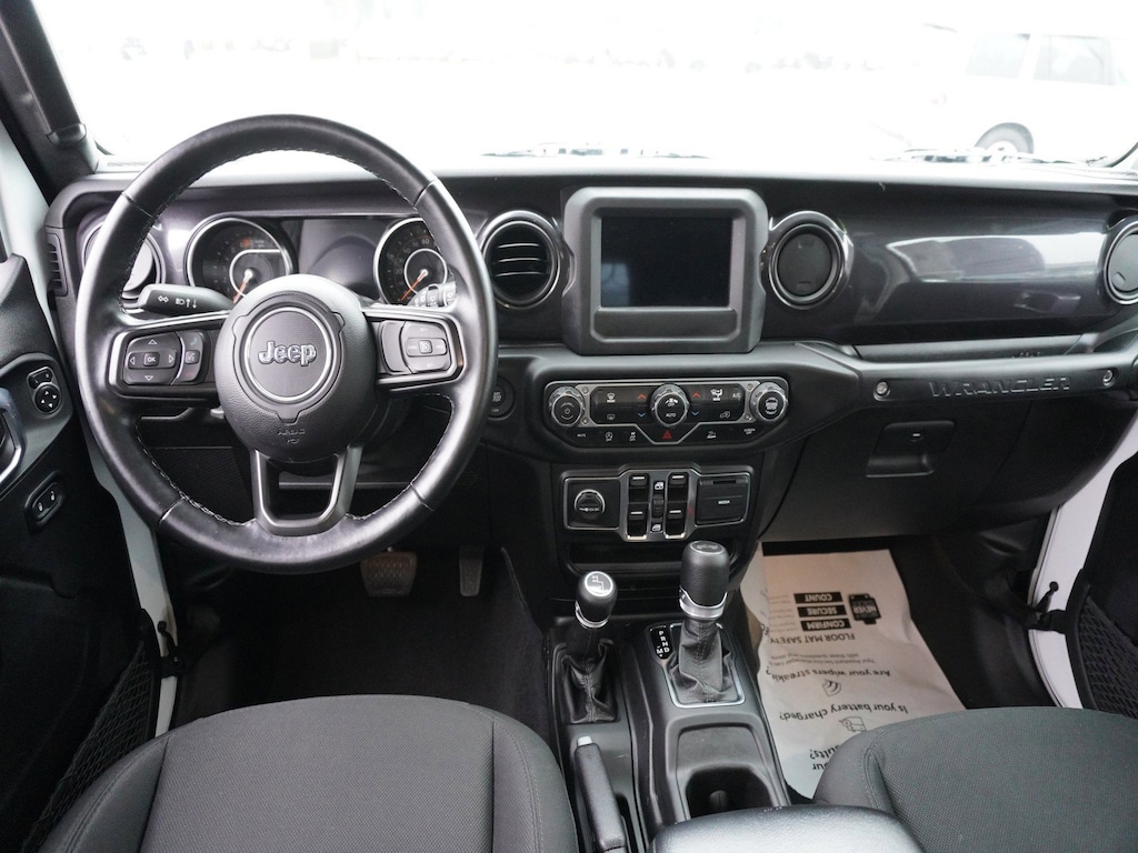 Clean CARFAX. 2.0L I4 DOHC One Owner, Clean CARFAX, Automatic Headlamps, Black 3-Piece Hard Top, Black Interior Accents, Black Trail Rated Badge, Body Color Grille w/Gloss Black Rings, Deep Tint Sunscreen Windows, Freedom Panel Storage Bag, Front 1-Touch Down Power Windows, Heavy Duty Suspension w/Gas Shocks, Leather Wrapped Steering Wheel, Matte Black Jeep Badge, MOPAR Hardtop Headliner, No Soft Top, Power Heated Mirrors, Quick Order Package 22L Altitude, Rear Window Defroster, Rear Window Wiper/Washer, Remote Keyless Entry, Security Alarm, Speed Sensitive Power Locks, Sun Visors w/Illuminated Vanity Mirrors, Wheels: 18" x 7.5" Gloss Black Aluminum, Wizard Black Instrument Panel Bezels, Wrangler Decal.